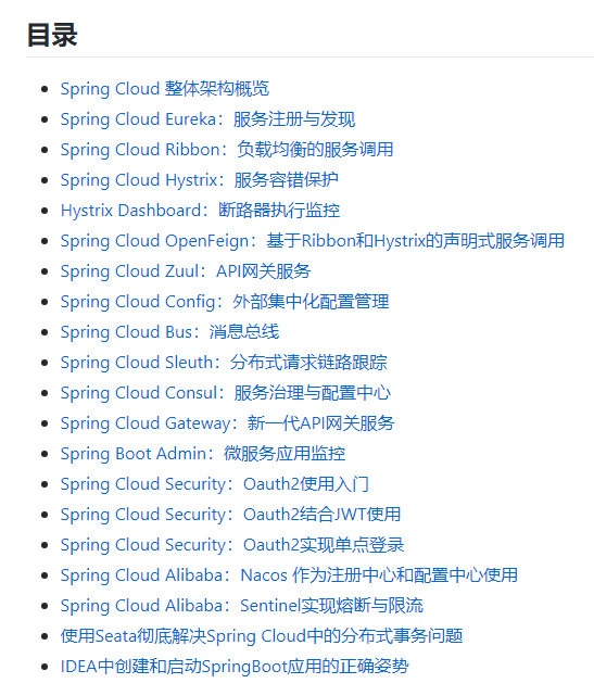 以下是springcloud-learning中所涵盖的内容: