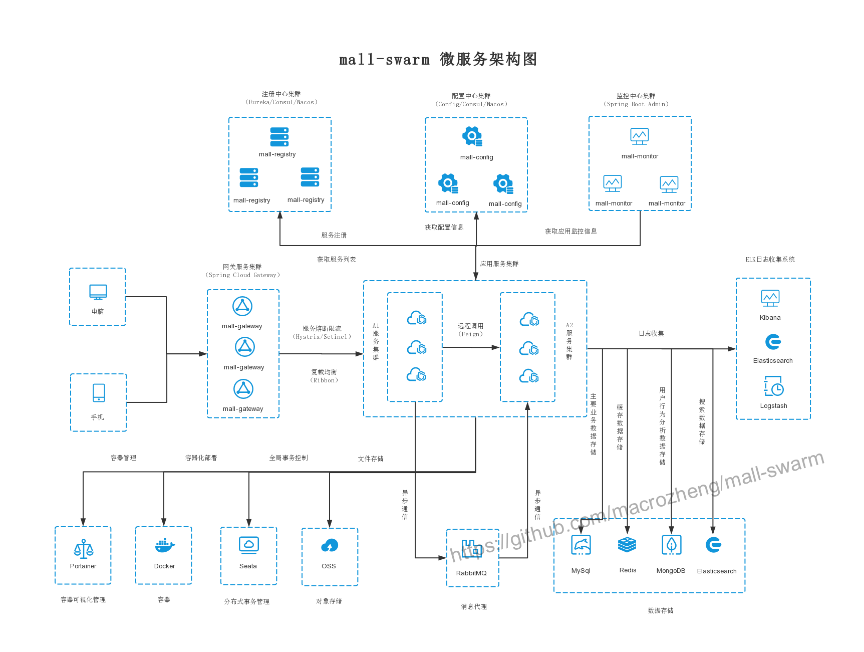 学习了很多Spring Cloud 的各种核心知识,是时候来一波实战了,于是我在mall项目的基础上进行了改造,在原来电商业务的基础集成了注册中心、配置中心、监控中心、网关等系统功能,mall-swarm项目就此诞生。