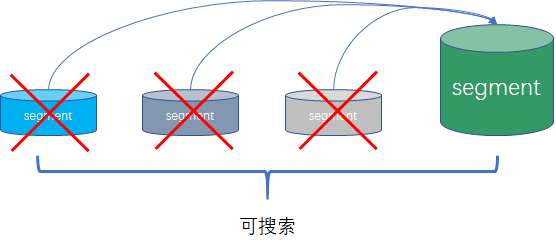 合并完成后,新的更大的段flush到磁盘中,并完成refresh操作,老的段被删除掉。