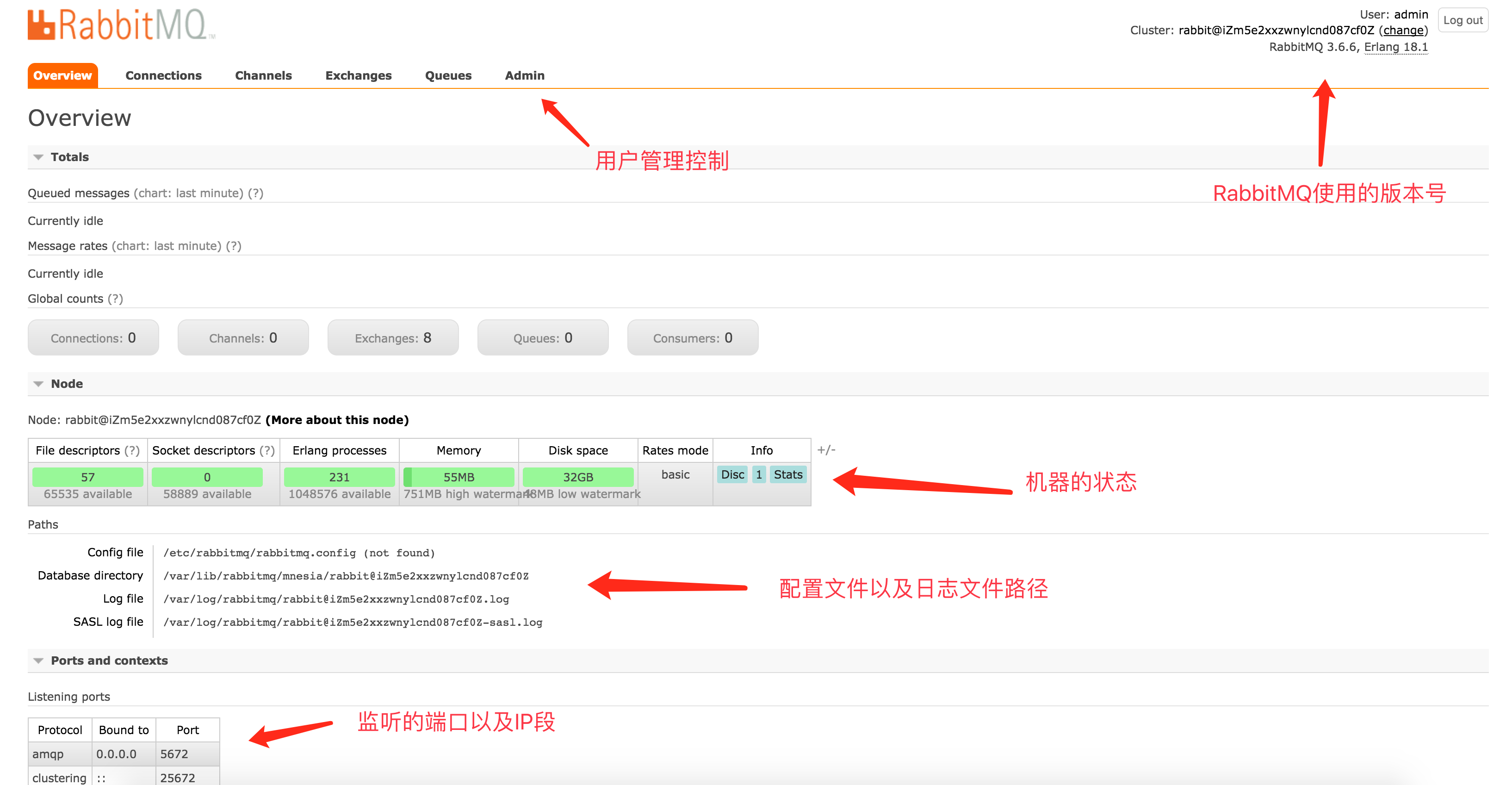 rabbitMQ提供一套功能全面的管理后台程序,我们需要开启web服务即可通过http://主机IP:15672 进行访问(建立防火墙进行拦截,通过nginx限定IP访问)