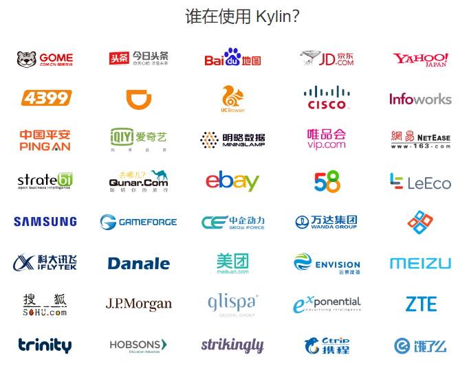 正是有以上那么多的优势存在,也吸引了很多企业使用Kylin来分析数据,如图所示: