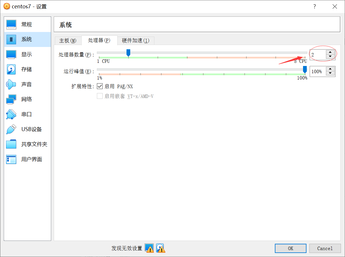 - 配置,系统->屏幕,设置显卡控制器为VBoxVGA,否则进入Centos7图形界面后有时会鼠标会失控。