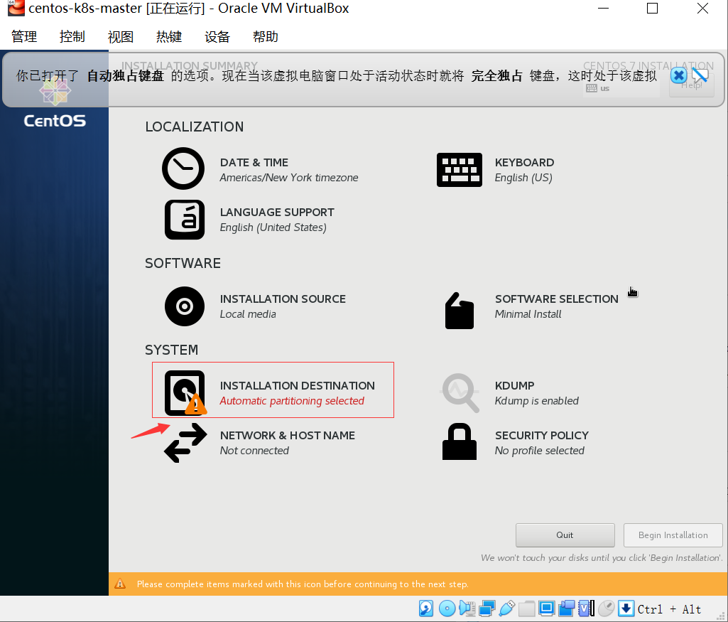 ,【NETWORK&HOSTNAME】中要打开网络(否则enp0s3网卡不可用,winscp远程连接会失败),