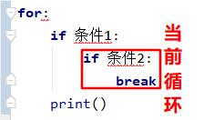 说明:结束当前循环x = 0 while True: x += 1 if x > 3: break print(x) # 输出结果如下: 1 2 3如果遇到循环有多层嵌套,要注意break只影响当前循环