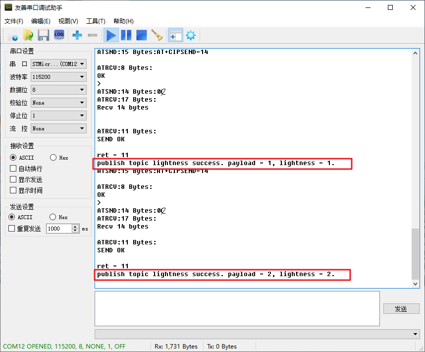 printf("publish topic %s success. payload = %s, lightness = %d.\r\n", pubpara_lightness.topic.data, pubpara_lightness.msg.data, lightness_value);