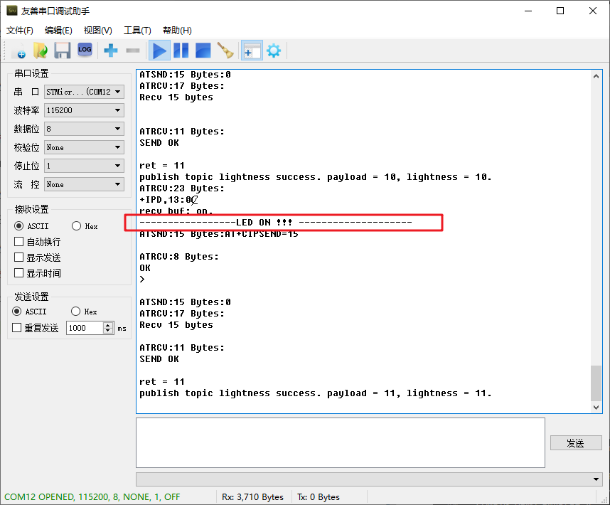 可以看到设备后作出回应: