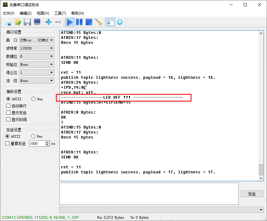 再下发一条关闭命令:
