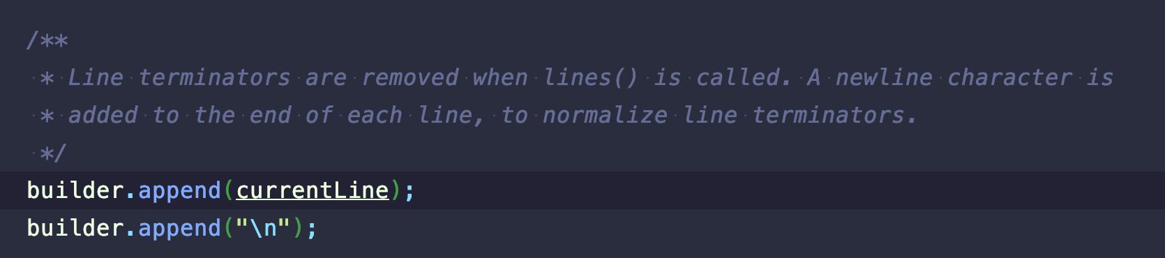 调用 indent 方法会自动添加一个换行符号 \n ,在该方法的实现中也明确给了注释说明,目的是为了行终结符的规范化