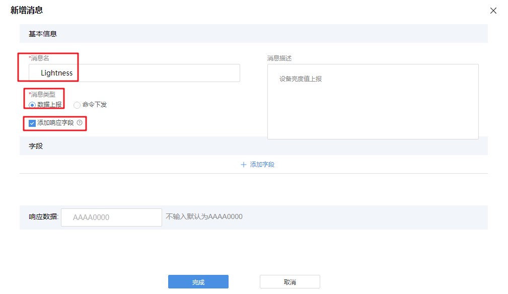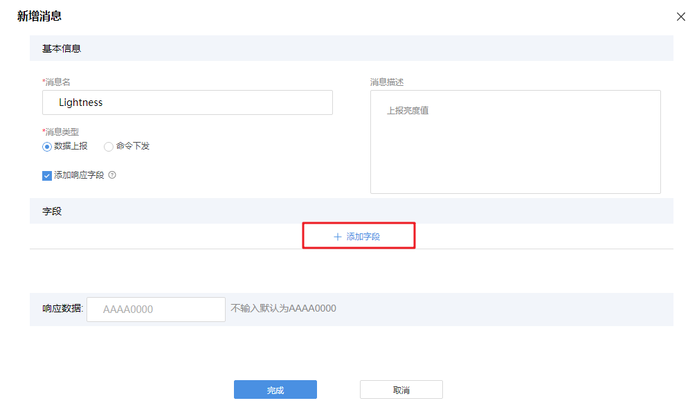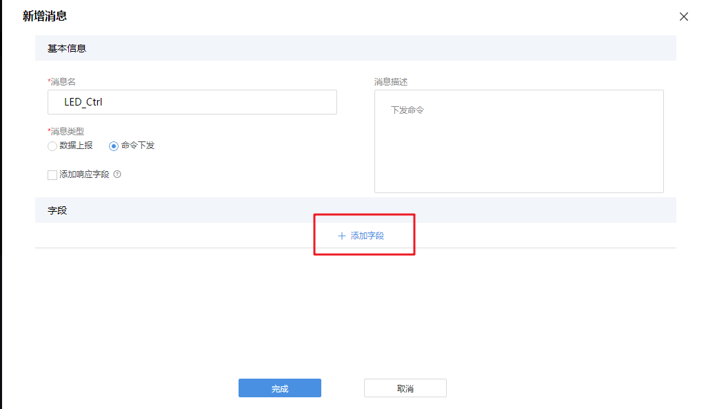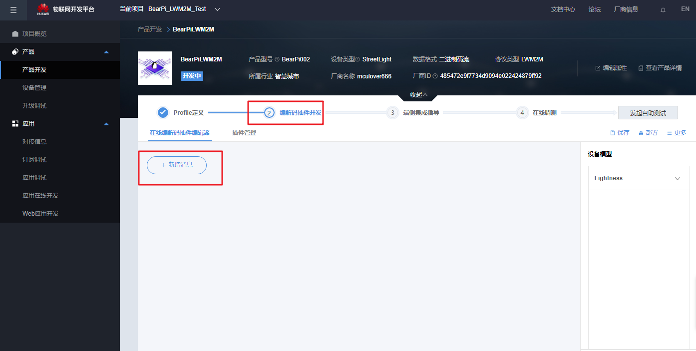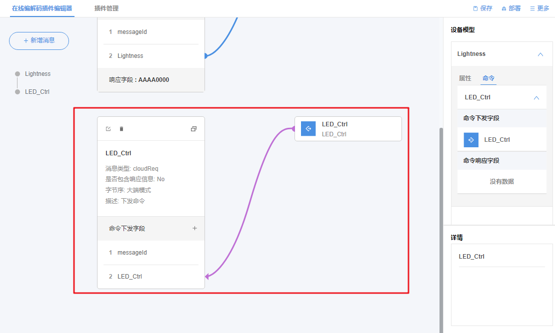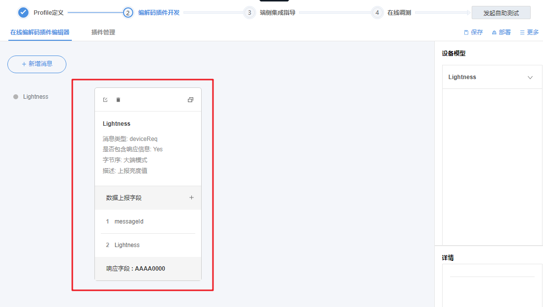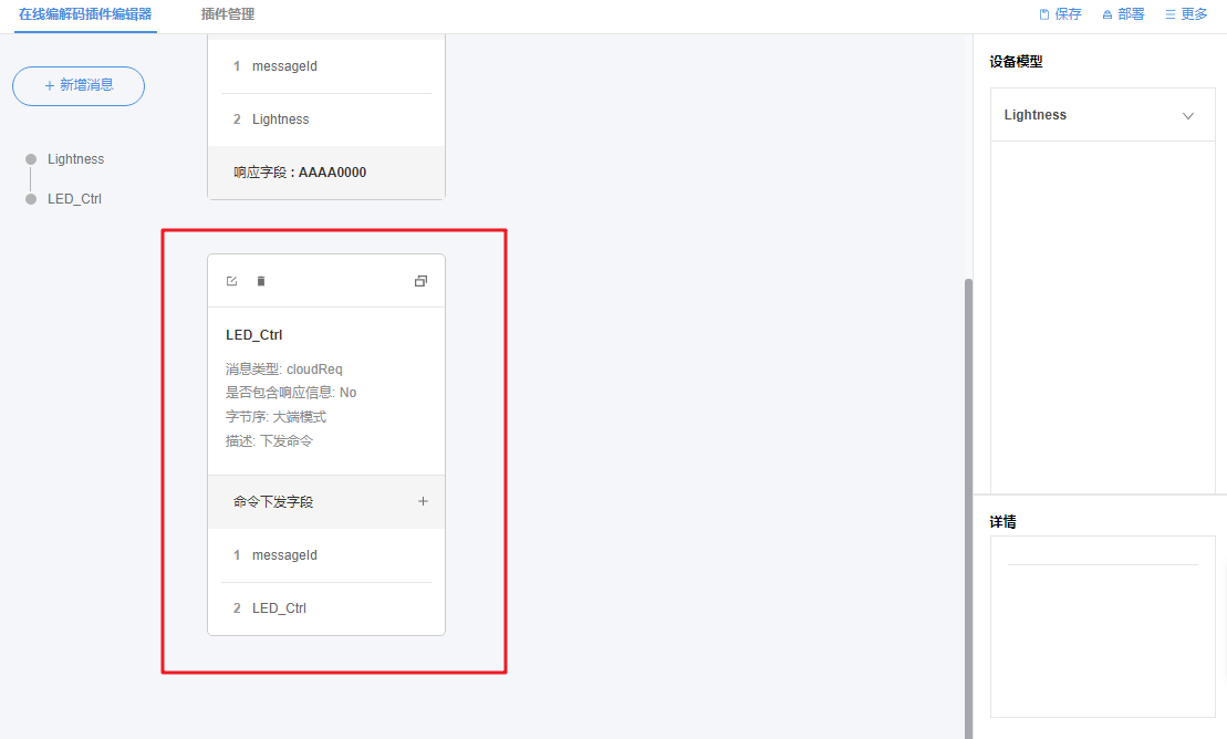点击编解码插件开发,点击新增消息,填写下发命令数据的基本信息: