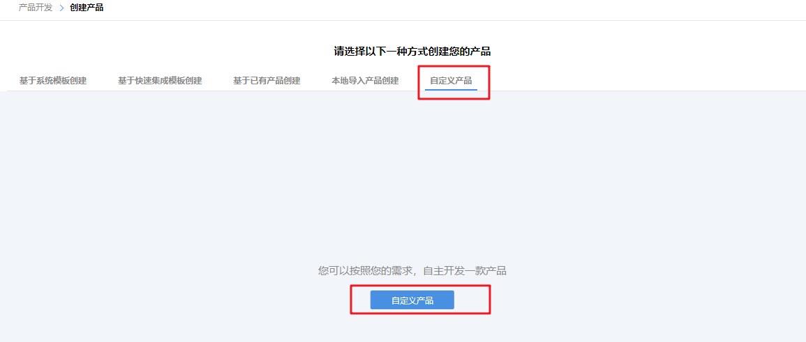 选择创建自定义产品: