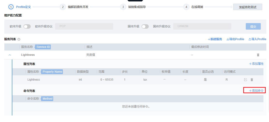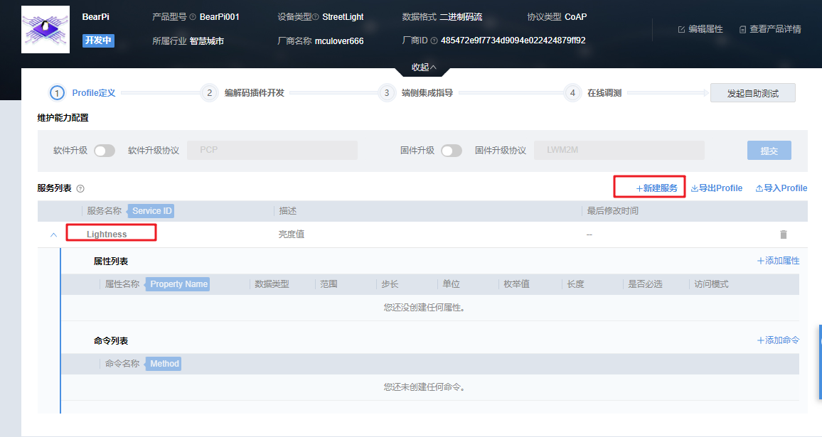 接下来我们需要创建该设备的属性和控制命令。