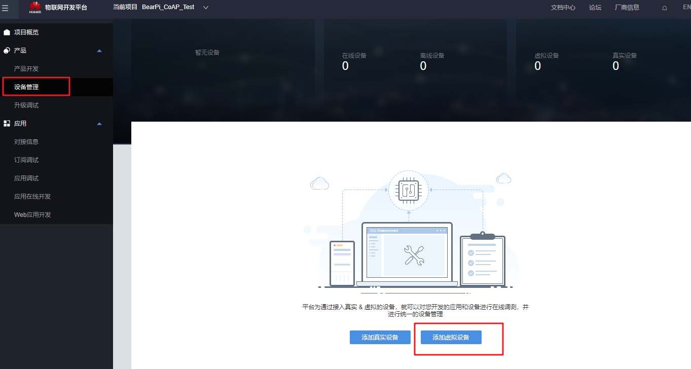 在设备管理界面点击创建虚拟设备: