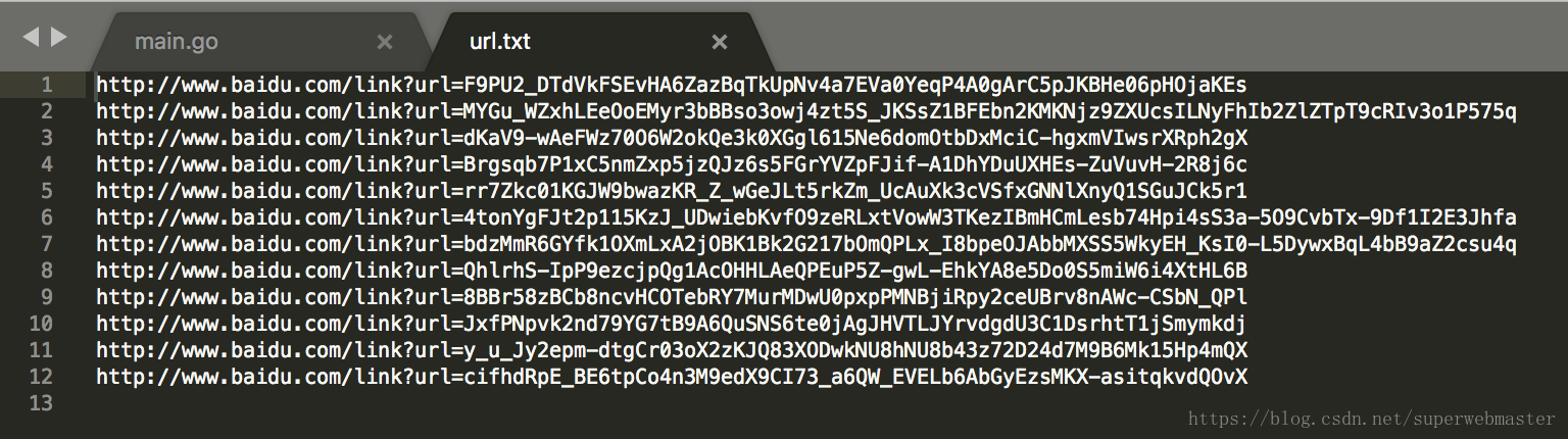 }上面的firstStart函数(首次执行爬抓)已经执行过了,那就会重新调用main函数,也就是在执行一次判断,但是因为我们的url.txt里已经有12条Url地址,所以这次会执行Timer函数。