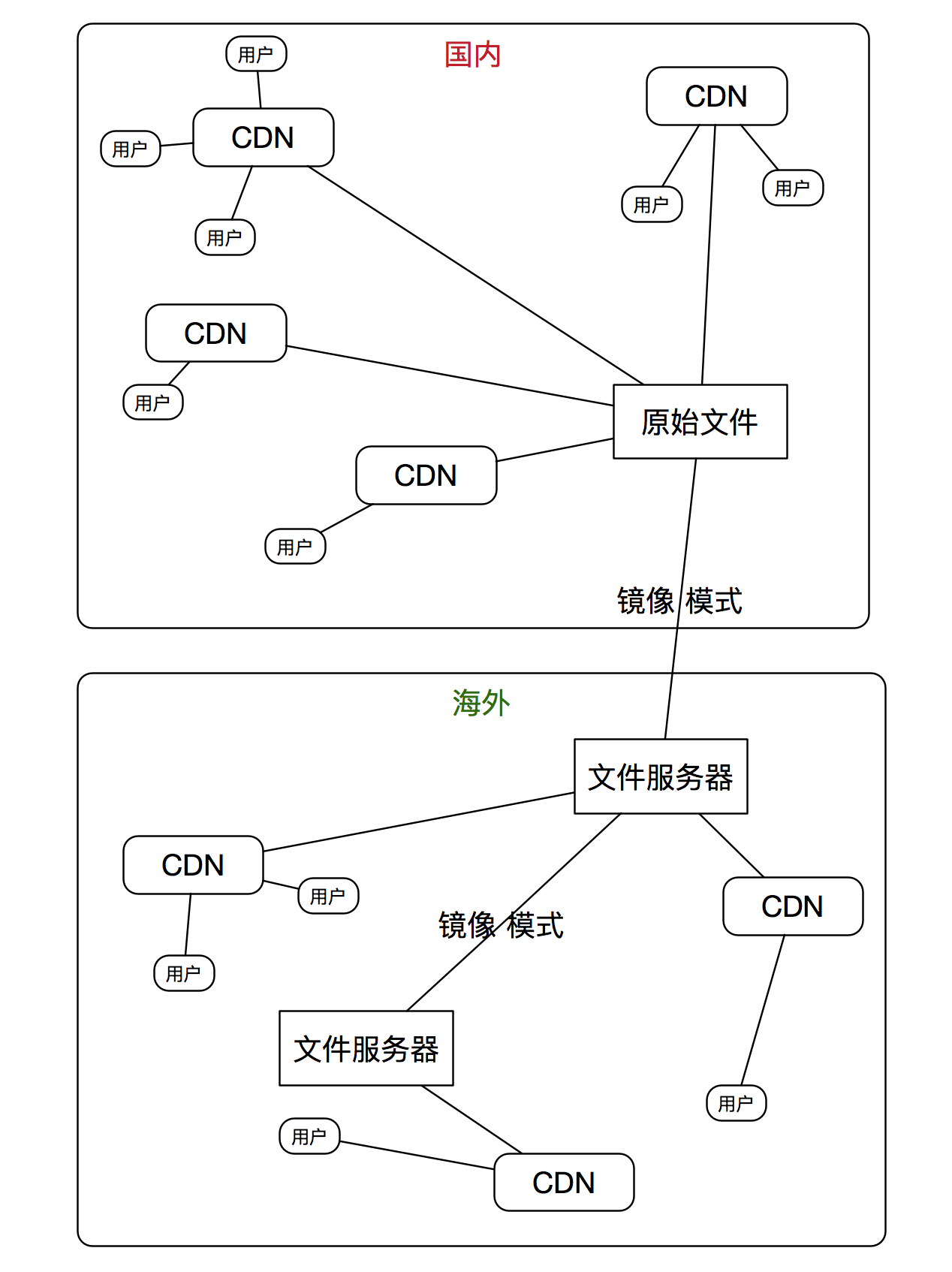 所有的前提要基于云文件系统(这里使用的是OSS)中的镜像模式简单来说就是文件服务器中没有文件,这个时候有个请求来访问发现找不到文件会先找到镜像的站点获取一下,如果获取到了就在返回的同时自己也存储一份(其实也就是类似CDN的功能),于CDN不同CDN只能全部到一个文件服务器,那么在CDN之前还有一个文件服务器的分发网络,所有的文件只要被海外访问过一次就会不停的在各个文件服务器上进行传递并且保存在文件服务器本身上,可以理解为CDN回源回到了CDN从CDN中获取了文件