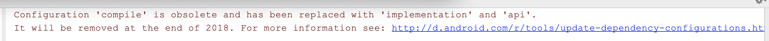 Configuration 'compile' is obsolete and has been replaced with 'implementation' and 'api'.