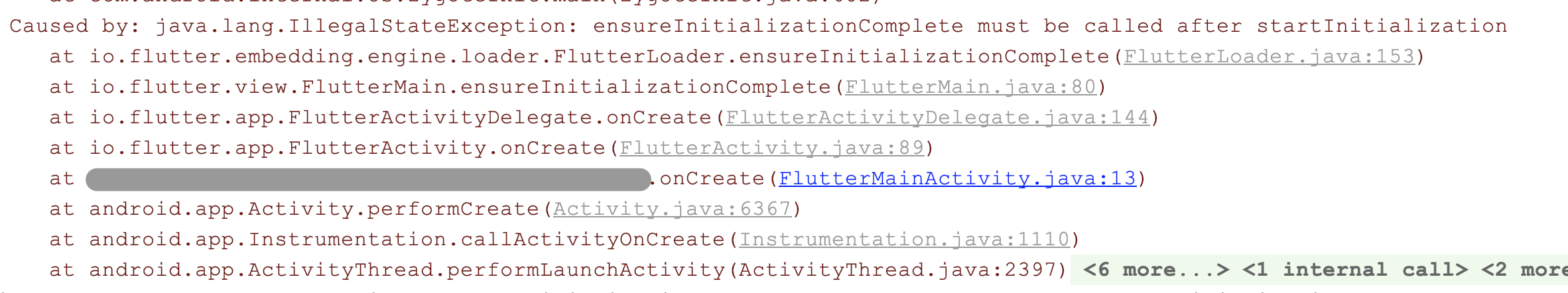 at io.flutter.embedding.engine.loader.FlutterLoader.ensureInitializationComplete(FlutterLoader.java:153)