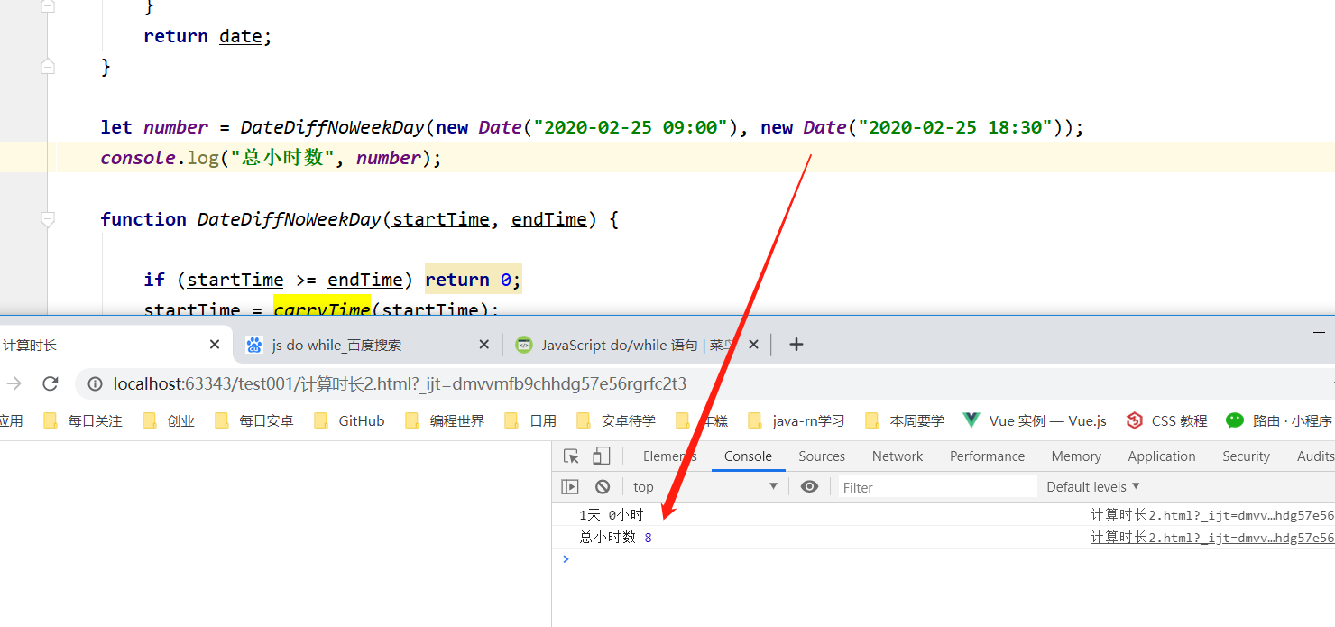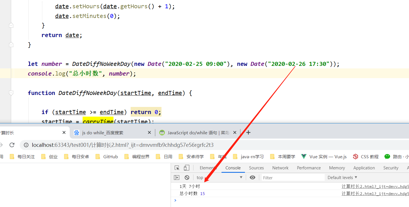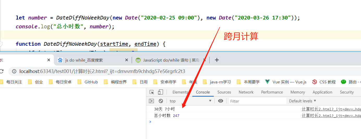 js获取一段时间内的工时,除去周末,午休时间