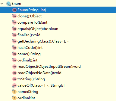我们看到报错了,是在寻找构造函数的时候报错的,即没有无参的构造方法,那我们看下他继承的父类ENUM有没有构造函数,看下源码,发现有个两个参数String和int类型的构造方法,我们再看下是不是构造方法的问题。