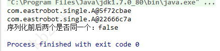 我们来看下运行结果,很显然序列化前后两个对象并不相等。为什么会出现这种问题呢?这个讲起来,又可以写一篇文章了。简单来说,任何一个readObject方法,不管是显式的还是默认的,它都会返回一个新建的实例,这个新建的实例不同于该类初始化时创建的实例。