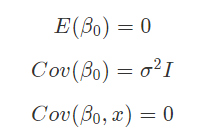 也就是说,残差的期望为0,协方差是单位矩阵,与自变量的协方差为0。