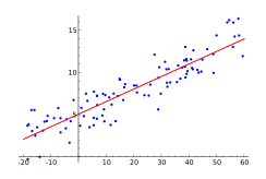 举个通俗的例子,如下二维平面图中有很多个点,假设我们想用一条直线来拟合数据,即期望能找到一条直线能最好地穿过这些数据点。