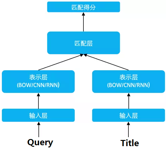 DSSM 从下往上可以分为三层结构:输入层、表示层、匹配层
