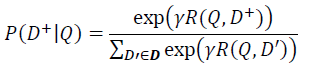 通过softmax 函数可以把Query 与正样本 Doc 的语义相似性转化为一个后验概率: