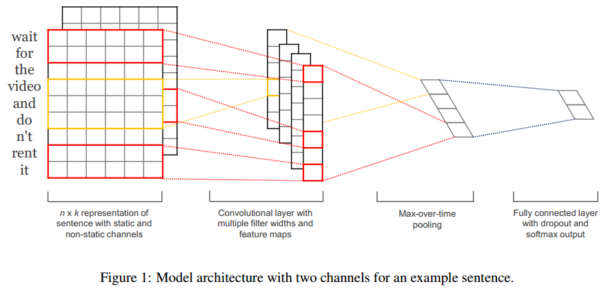 优点:CNN-DSSM 通过卷积层提取了滑动窗口下的上下文信息,又通过池化层提取了全局的上下文信息,上下文信息得到较为有效的保留。