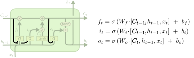 LSTM-DSSM 其实用的是 LSTM 的一个变种——加入了peephole[6]的 LSTM。如下图所示: