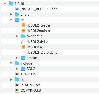 SDL 下载之后位于 MAC 系统的如下目录,这个目录后续会用到的。