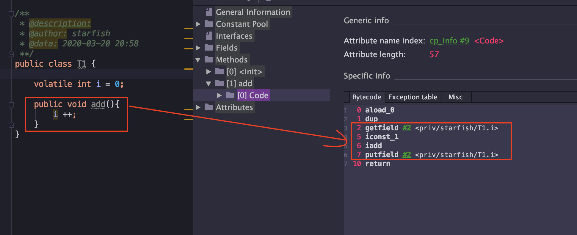 getfield获取原始值iconst_1将值入栈iadd进行加 1 操作putfield把iadd后的操作写回主内存