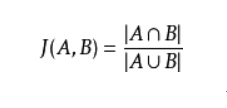 Jaccard相似指数被定义为两个集合交集的元素个数除以并集的元素个数: