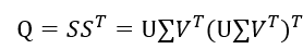 上式称为矩阵Q的特征值分解,这样,如果我们要对S进行奇异值分解,只需要对Q进行特征值分解。