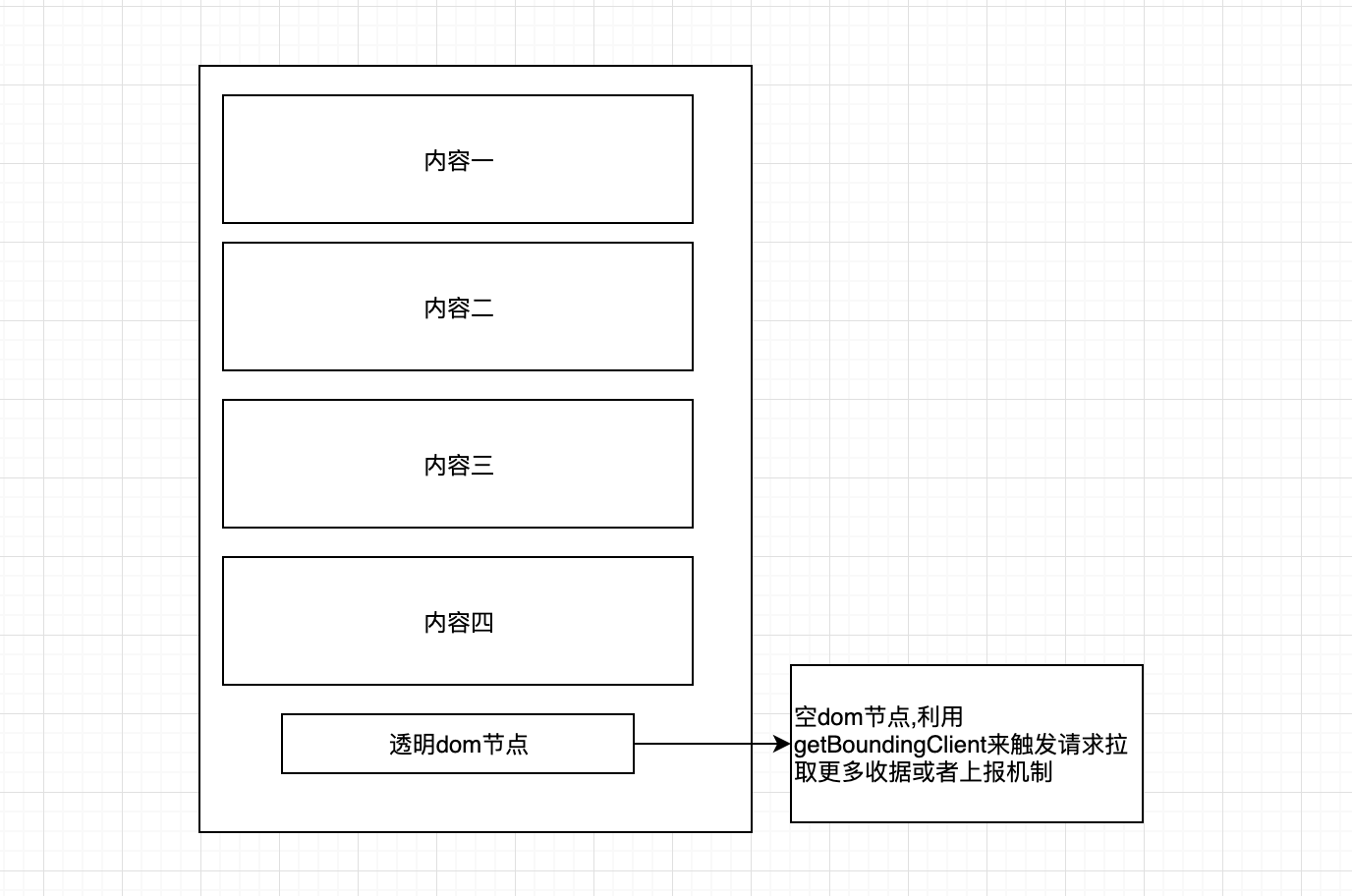 资源的懒加载可以极大的降低页面首屏时间, 我们不仅仅可以对图片采用懒加载, 即只给用户展示可视区域内的图片(虽然图片的懒加载意义更加重大),我们还可以对内容进行懒加载,本质上是一种特殊的分页技巧, jquery时代的lazyload是一个很好的例子,当然现在自己实现一个懒加载方案也非常简单,我们只需要使用getBoundingClientRect这个API配合具体业务使用即可,内容型平台用的比较多,比如我们手机滑到某一区域才加载更多内容,笔者之前做的某头条的广告埋点上报机制就是一个很好的例子.大致思路如下: