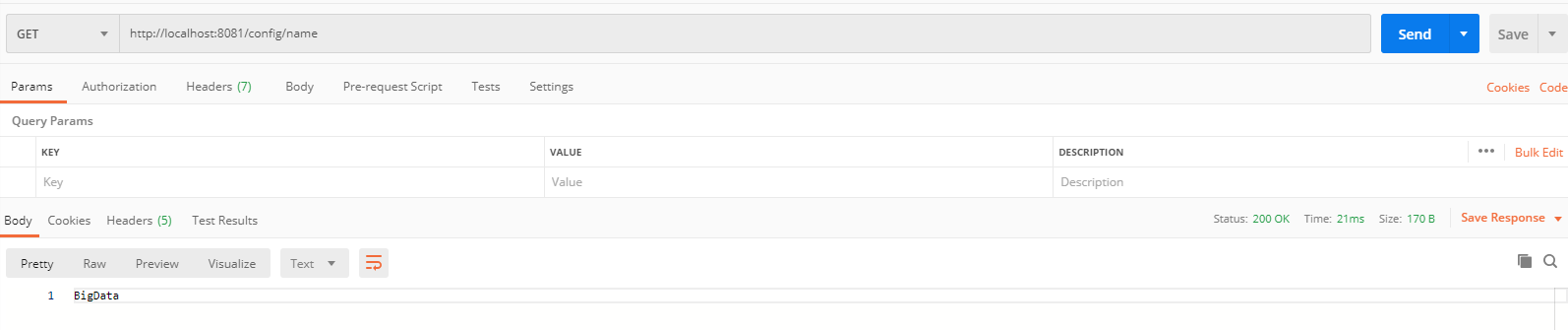 进入Nacos控制台修改配置信息,name修改为bigData 再次进行测试