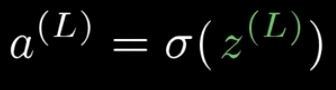 在下图中,a表示激活值,a(L)和a(L-1)表示倒数最后两层的神经元,这里L只是上标,不是乘方运算符。y表示我们期望的结果,就是点亮1.0。