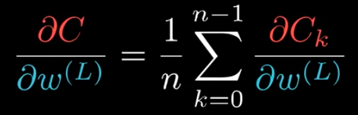 我们上面谈到的只是一个训练样本时 w(L)这个权重的情况,实际上我们有n张训练图片,那么我们就对Cost求和再取平均数。