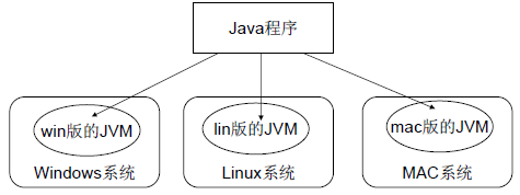 注意:跨平台的是 Java 程序,而不是 JVM。JVM 是用 C/C++ 开发的,是编译后的机器码,不能跨平台,不同平台下需要安装不同版本的 JVM