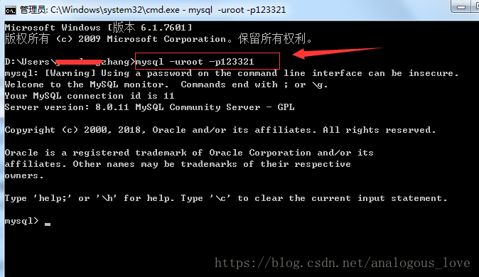 这个系列的第二篇文章《从零学习开源项目系列(二) 最后一战概况》中我们介绍了,这套游戏的服务需要使用redis和mysql,我们先看下mysql是否准备好了(mysql服务启动起来,数据库建表数据存在,具体细节请参考第二篇文章)。打开Windows的cmd程序,输入以下指令连接mysql: