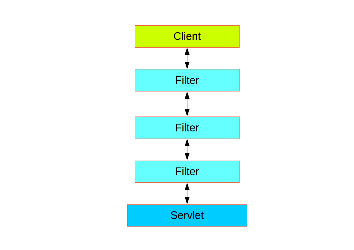 请求从客户端发起(例如浏览器),然后穿过层层 Filter,最终来到 Servlet 上,被 Servlet 所处理。