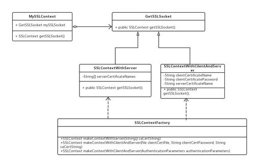 不管是使用自签名证书,还是采取客户端身份验证,核心都是创建一个自己的KeyStore,然后使用这个KeyStore创建一个自定义的SSLContext。整体类图如下: