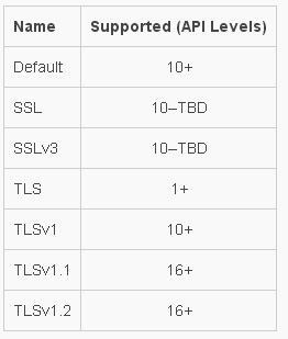 按照官方文档的描述,Android系统对SSL协议的版本支持如下: