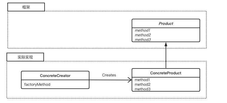 - ConcreteCreator角色属于实际加工方,它负责生产实际的产品。