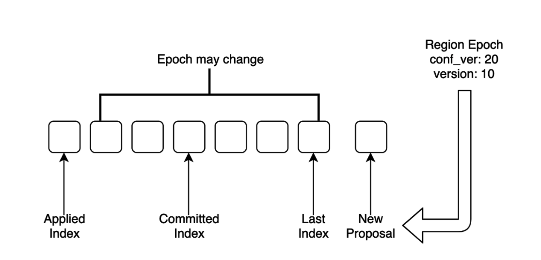 每条 Proposal 都会在提出的时候带上 PeerFsm 的 Region epoch,在应用的时候检查该 Region epoch 的合法性,如果不合法就跳过。