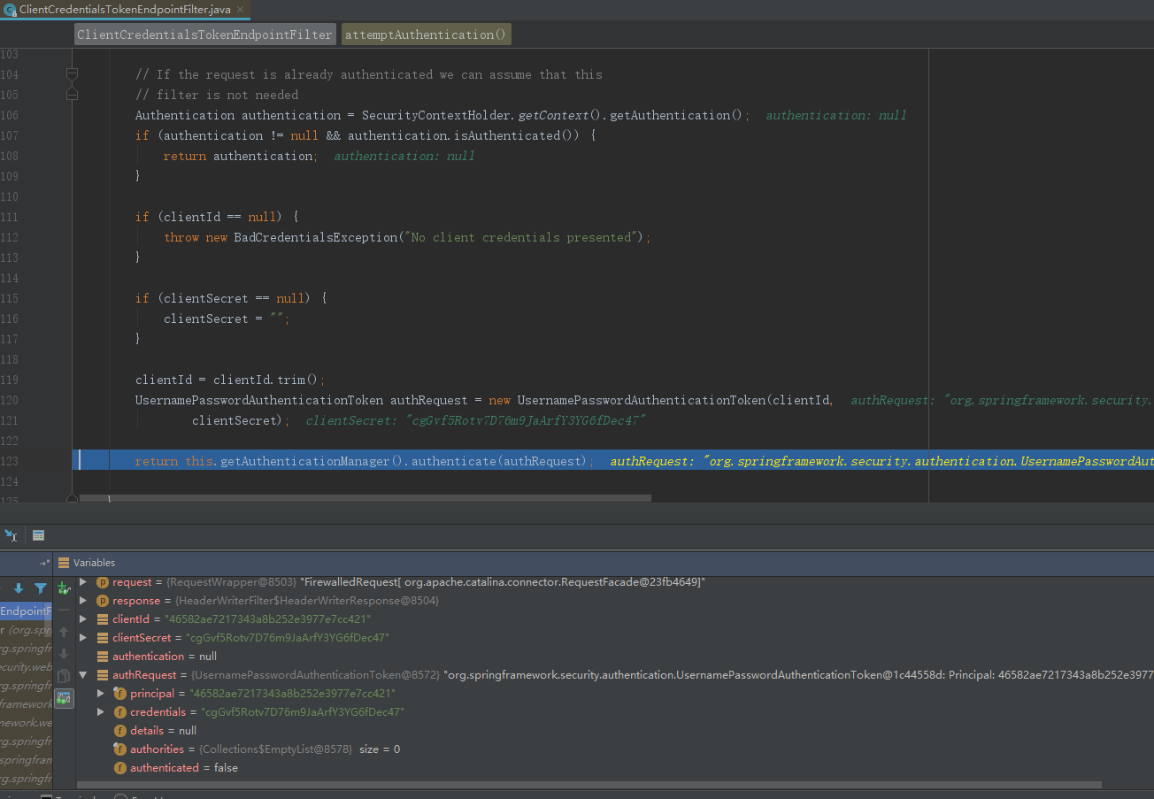 经过客户端认证核心过滤器ClientCredentialsTokenEndpointFilter(attemptAuthentication)