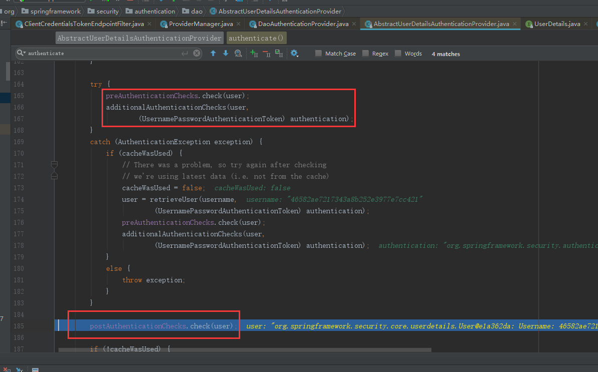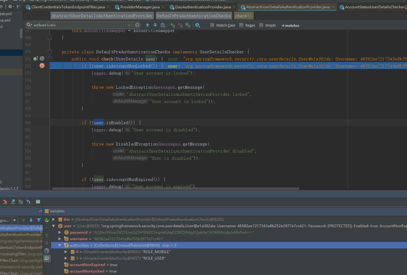然后进入 AbstractUserDetailsAuthenticationProvider 验证 信息是否可用,过期