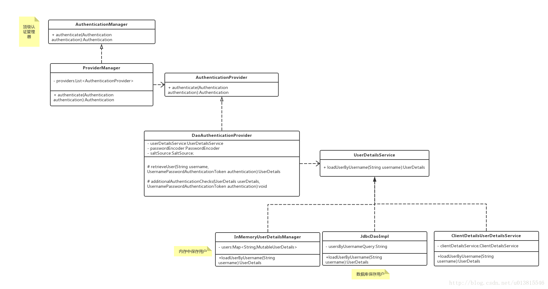 DaoAuthenticationProvider内部又聚合了一个UserDetailsService接口,UserDetailsService才是获取用户详细信息的最终接口
