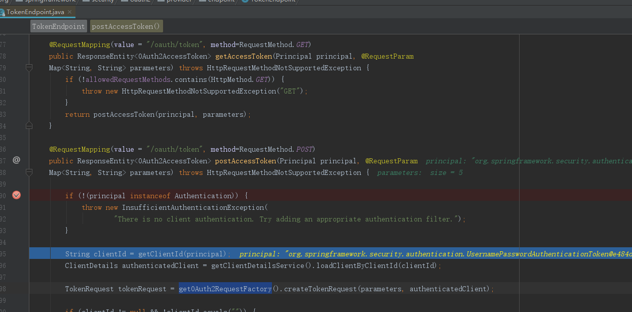TokenRequest tokenRequest = getOAuth2RequestFactory().createTokenRequest(parameters, authenticatedClient);