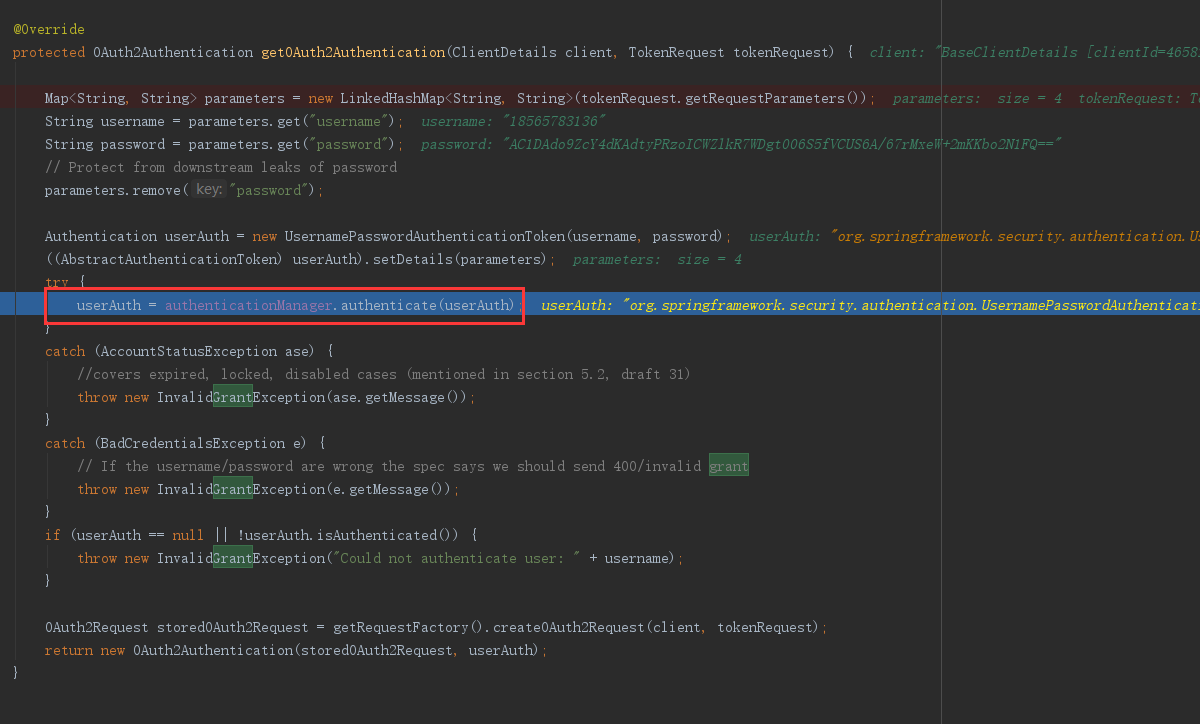 OAuth2AccessToken token = getTokenGranter().grant(tokenRequest.getGrantType(), tokenRequest);