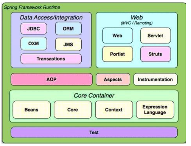 Web层包括spring-web、spring-webmvc、spring-websocket、spring-webmvc-portlet等模块。
